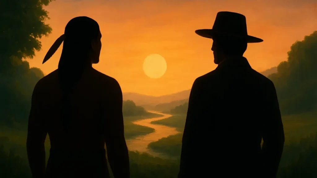 Na animação, o uso de cor e luz cria atmosferas distintas entre as cenas indígenas e as cenas dos colonos. Preste atenção nos enquadramentos: eles costumam destacar valores e tensões sem depender apenas do diálogo.